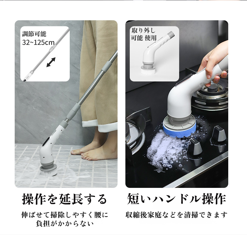 多機能電動クリーニングブラシ9ヘッドキッチンバスルーム洗浄ワイヤレス充電伸縮式ハンドヘルドブラシ洗浄ブラシ