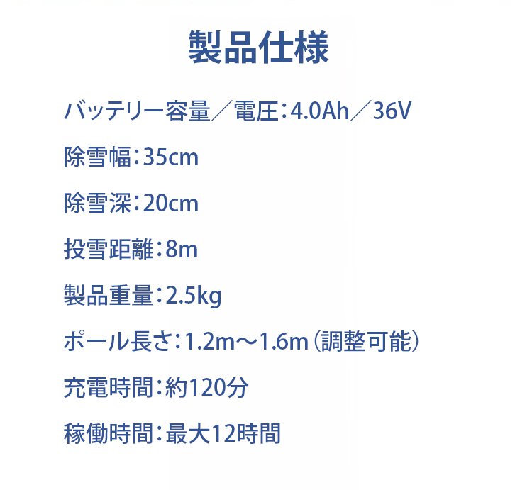 家庭用ハイパワーコードレス除雪機